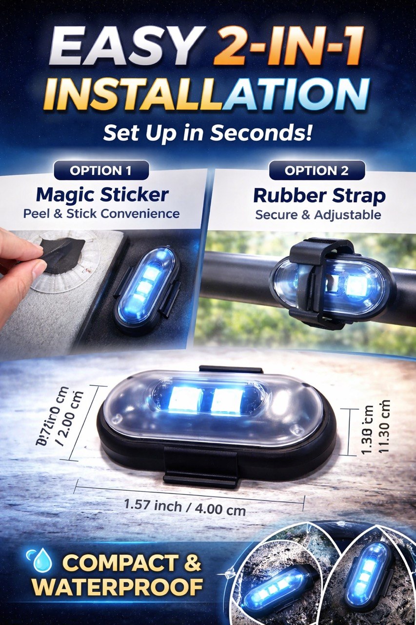 Upgrade Your Ride with High-Performance Interior & Exterior Strobe LightsLooking for an easy way to add style, safety, and visibility to your vehicle? Our Interior & Exterior Decoration Strobe Light delivers powerful performance in a compact design — perfect for car enthusiasts, emergency prep, or just making your ride stand out.⚡ Super Bright & Easy to ActivateMost people ask: How do I turn it on? Just charge the light for at least 5 seconds to activate it, then unplug. When it glows ICE BLUE, it’s ready to sync. Simply long-press the ‘ON’ button on the remote — and you’re done.🔋 Ultra-Long Service TimeWith a built-in 110mAh battery, a full 60-minute charge gives you up to 6 hours of continuous lighting. That’s hours of head-turning glow.🔋 Know When You’re Ready to GoWhile charging, the light turns GREEN. When fully charged — it switches OFF. No guessing, no overcharging.🛠️ Strong, Secure MountingThe included Velcro sticks firmly — just make sure your car’s surface is clean, dry, and free of dust or oil before applying.🚗 Pro Tip for Best ResultsFor first-time use or after long storage, charge the strobe light for at least 30 minutes. And always fully charge each light before use — it makes all the difference.